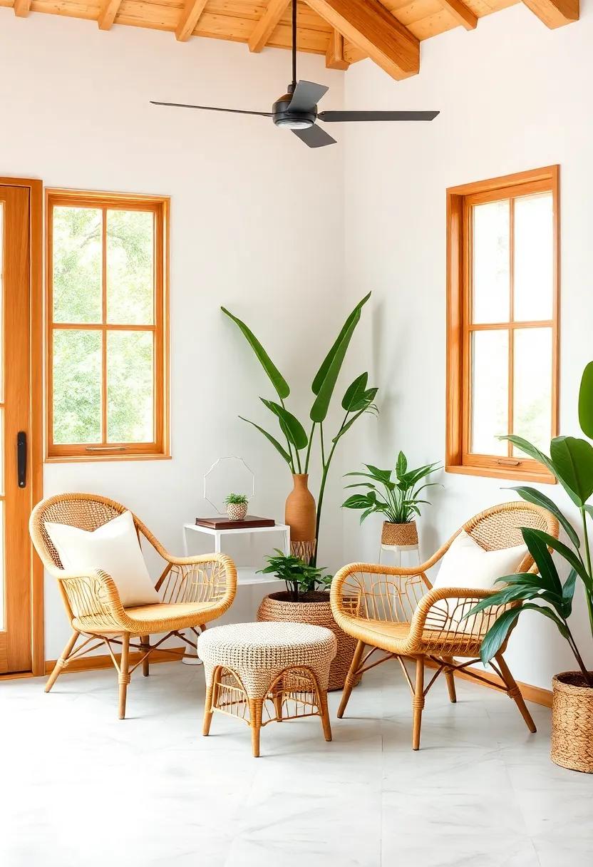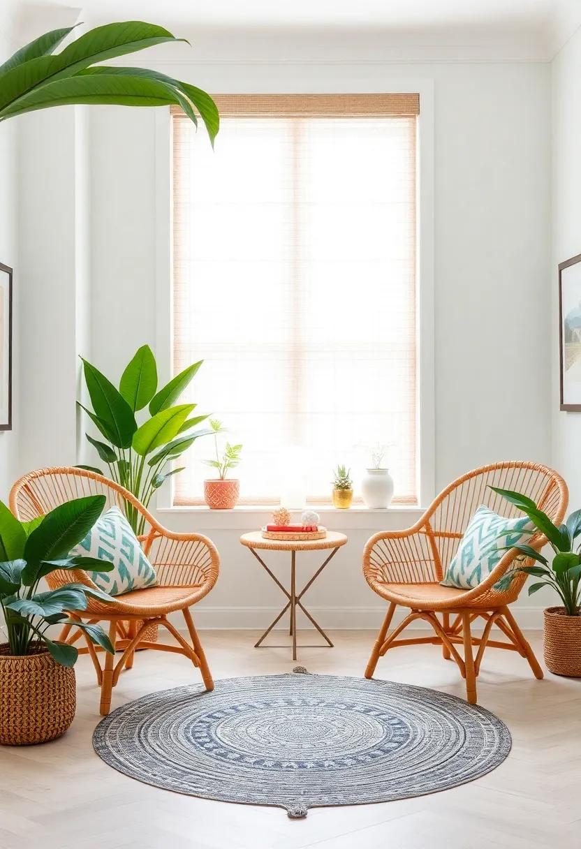- Earthy Color Palettes: Think soft greens, sandy beiges, or oceanic blues to complement rattan.