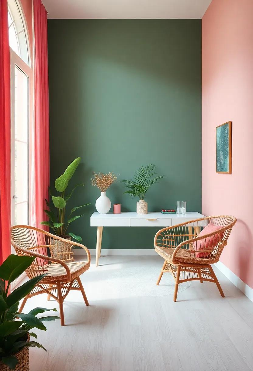Incorporating these hues into your rattan-decorated workspace can create a harmonious environment that not only feels vibrant and inviting but also supports your productivity and well-being. For instance, pairing a soft green on the walls with rattan furniture can create a soothing oasis, while bold accents in orange or yellow can invigorate the space, inspiring you to achieve your best work. Embrace color as a powerful tool to transform your tropical home office into a motivating and refreshing retreat.
