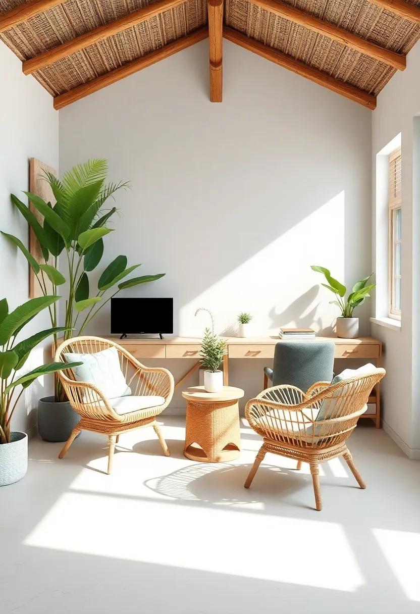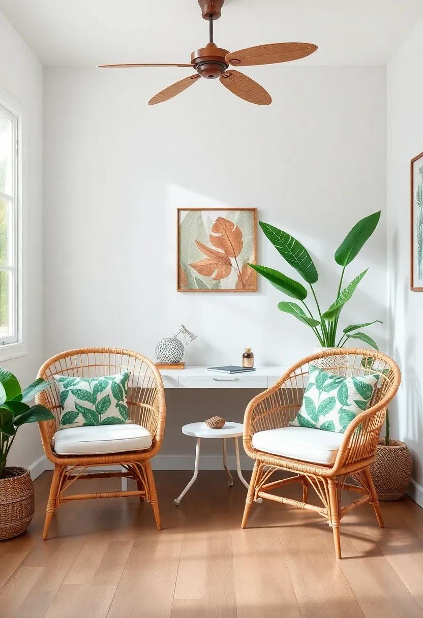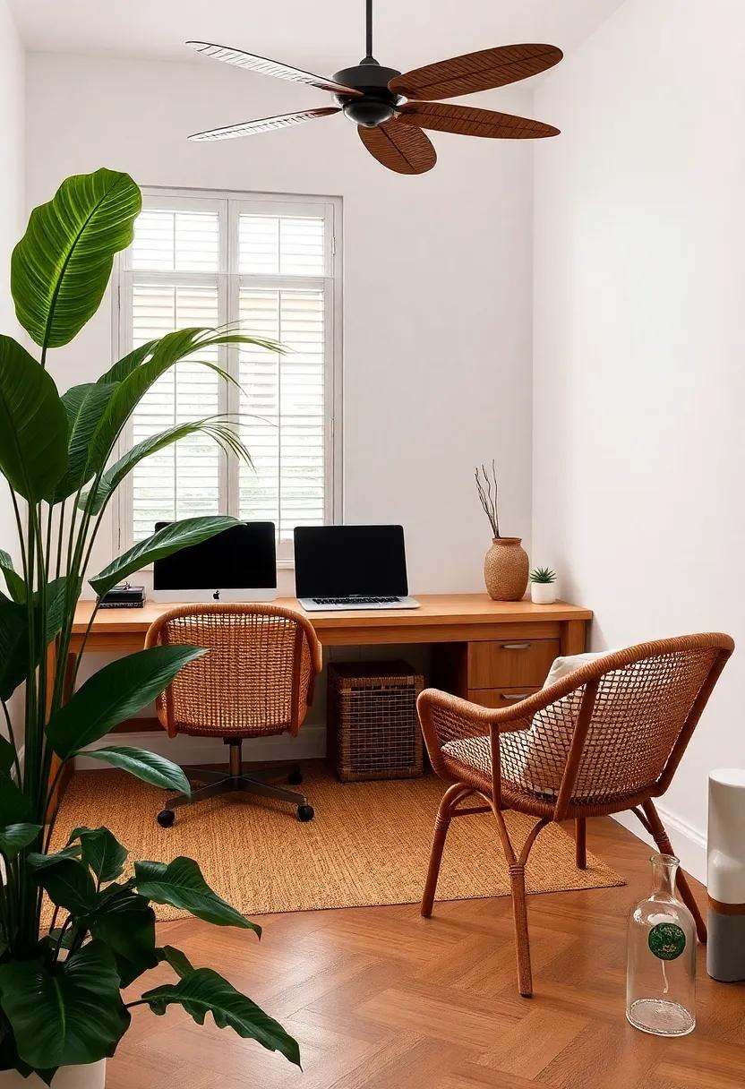 Transforming your home office into a tropical paradise can uplift your mindset and enhance productivity. The soothing sounds of nature, combined with an aesthetically pleasing design, can be achieved by incorporating rattan furniture and natural elements.Consider adding rattan chairs or desks, which not only provide a rustic charm but also create a cozy workspace. Surround your office with lush greenery by integrating indoor plants like pothos, snake plants, or peace lilies that not only purify the air but also evoke a serene tropical vibe.