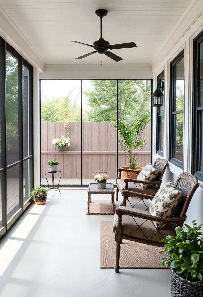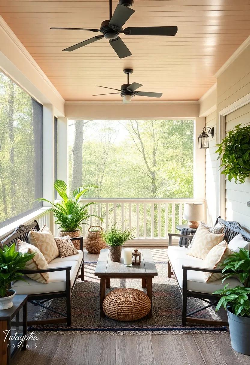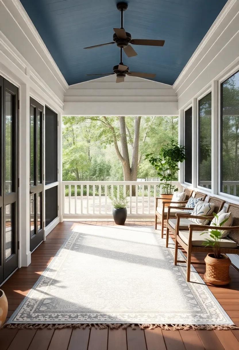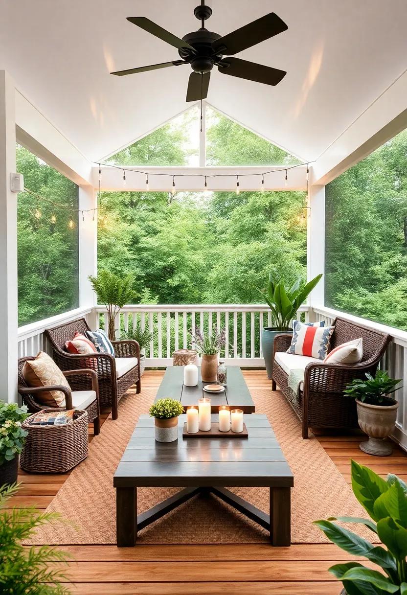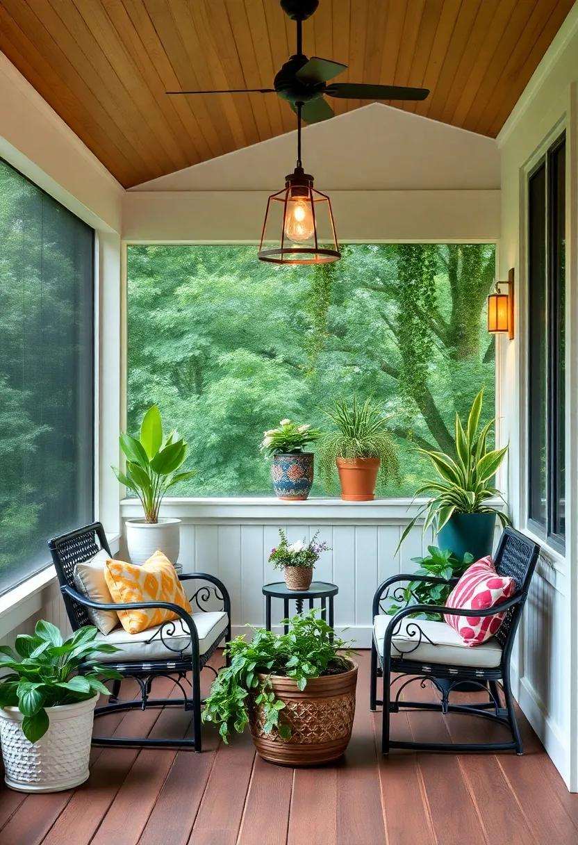 To elevate the charm, accessorize with multifunctional storage solutions.Look for benches or ottomans with hidden compartments to keep your porch tidy and organized. Additionally, introduce a hanging chair or two for a playful element that adds character. Incorporate vibrant outdoor rugs to define areas and add warmth, while also making the space more inviting. Don’t forget the finishing touches—lamps or candles that are weatherproof can create a magical ambiance in the evenings. With these stylish furniture choices, your screened back porch will become an extension of your home that offers both comfort and functionality.