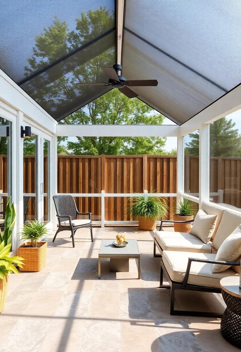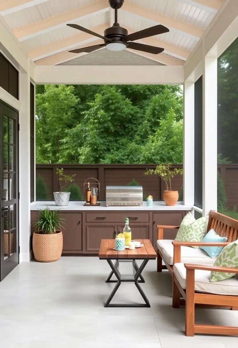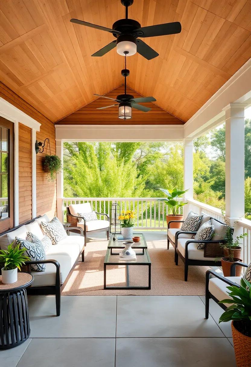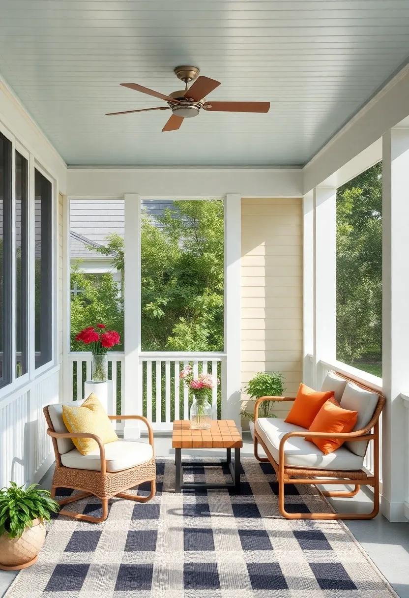 To elevate the charm, accessorize with multifunctional storage solutions.Look for benches or ottomans with hidden compartments to keep your porch tidy and organized. Additionally, introduce a hanging chair or two for a playful element that adds character. Incorporate vibrant outdoor rugs to define areas and add warmth, while also making the space more inviting. Don’t forget the finishing touches—lamps or candles that are weatherproof can create a magical ambiance in the evenings. With these stylish furniture choices, your screened back porch will become an extension of your home that offers both comfort and functionality.