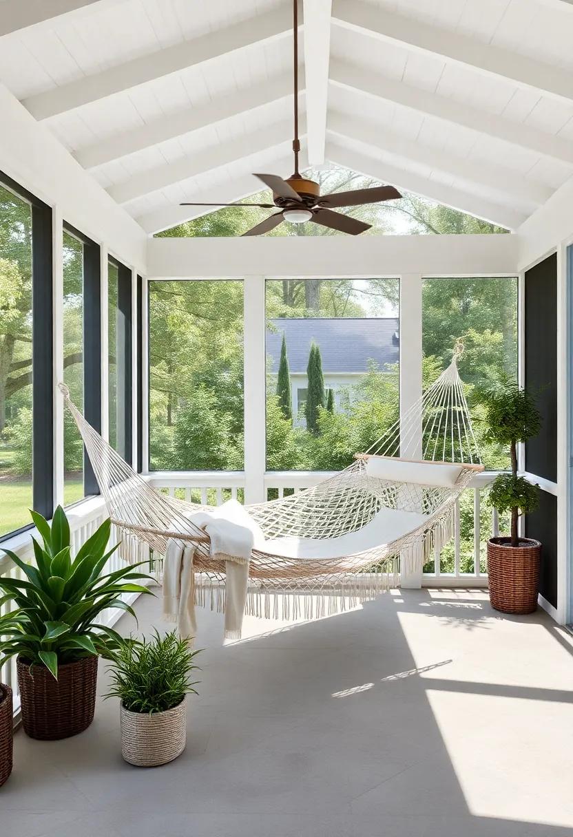 Additionally, a hammock can serve as a focal point in your screened porch, harmonizing with other outdoor furniture. Here are some quick tips to maximize its appeal: