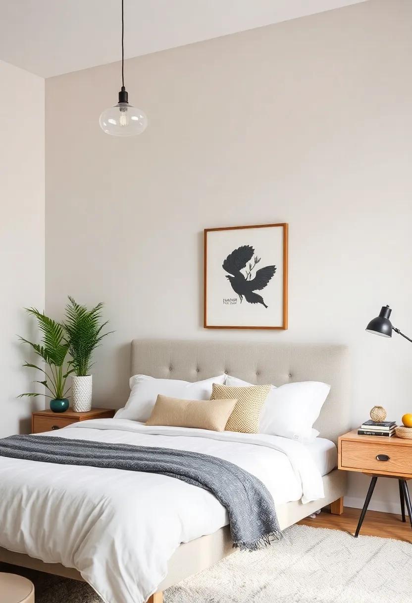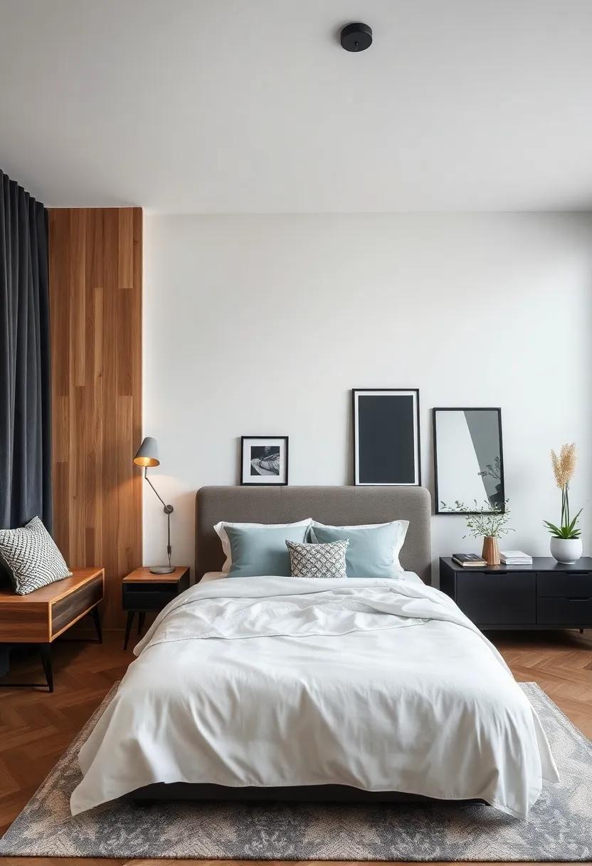 Lighting is not just a functional necessity; itS an art form that can dramatically shape the atmosphere of your space. In a modern eclectic bedroom, the right statement fixtures can serve as the cherry on top of your design sundae, blending practicality with personality. Consider incorporating a mix of bold pendant lights, unexpected table lamps, and unique wall sconces to create visual interest. Each piece can tell a story, reflecting your personal taste and the eclectic theme. Play with materials, such as a rustic wooden chandelier paired with sleek metal lamps, to achieve a captivating contrast that pulls the room together.