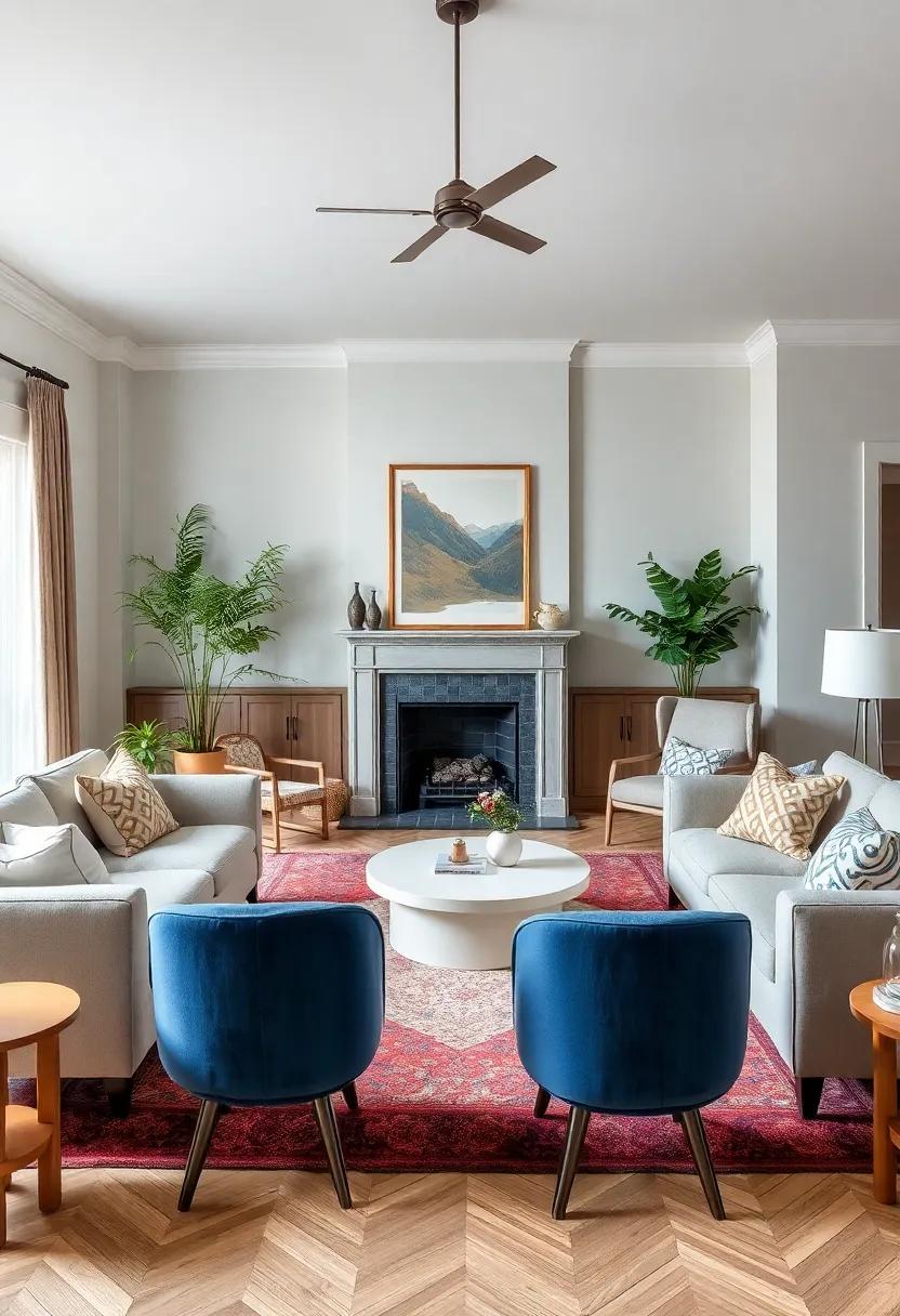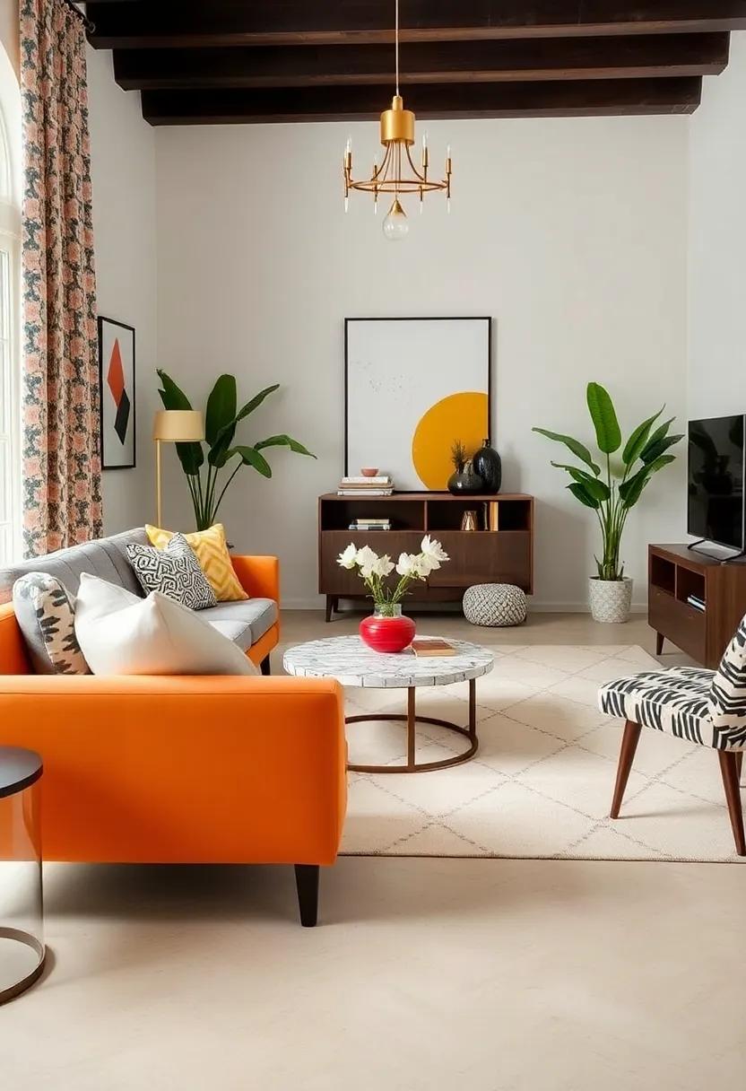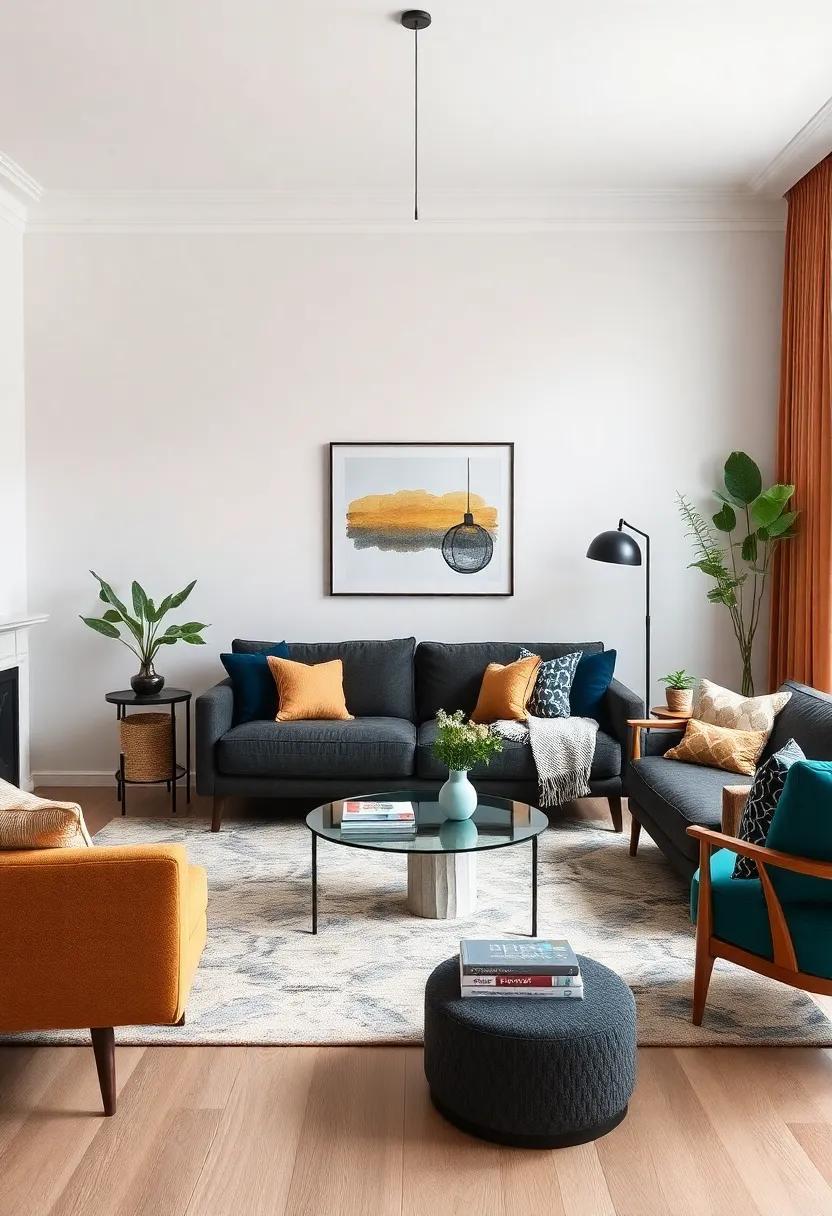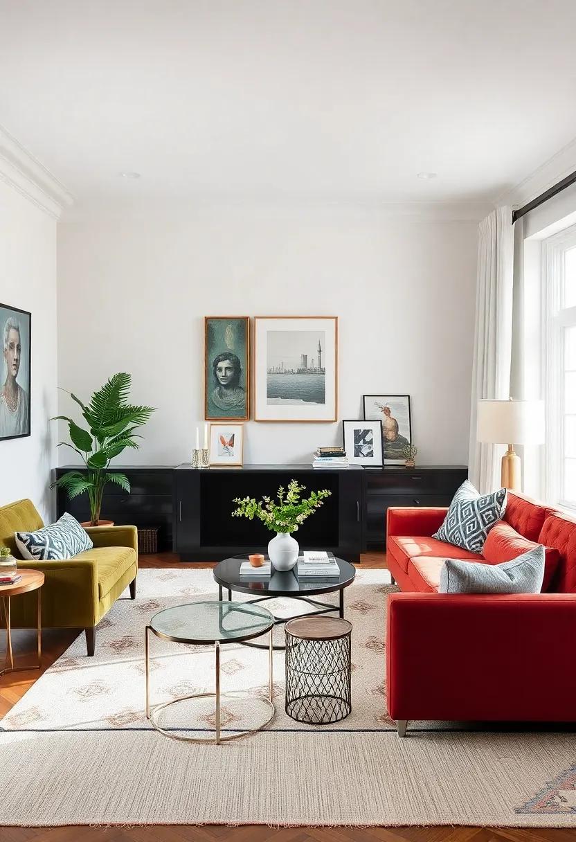This juxtaposition not only energizes the space but also fosters a sense of layered comfort, making your living room a true reflection of eclectic style. The interplay of softness and stability will engage your guests, inviting them to experience the unique character of your carefully curated decor.