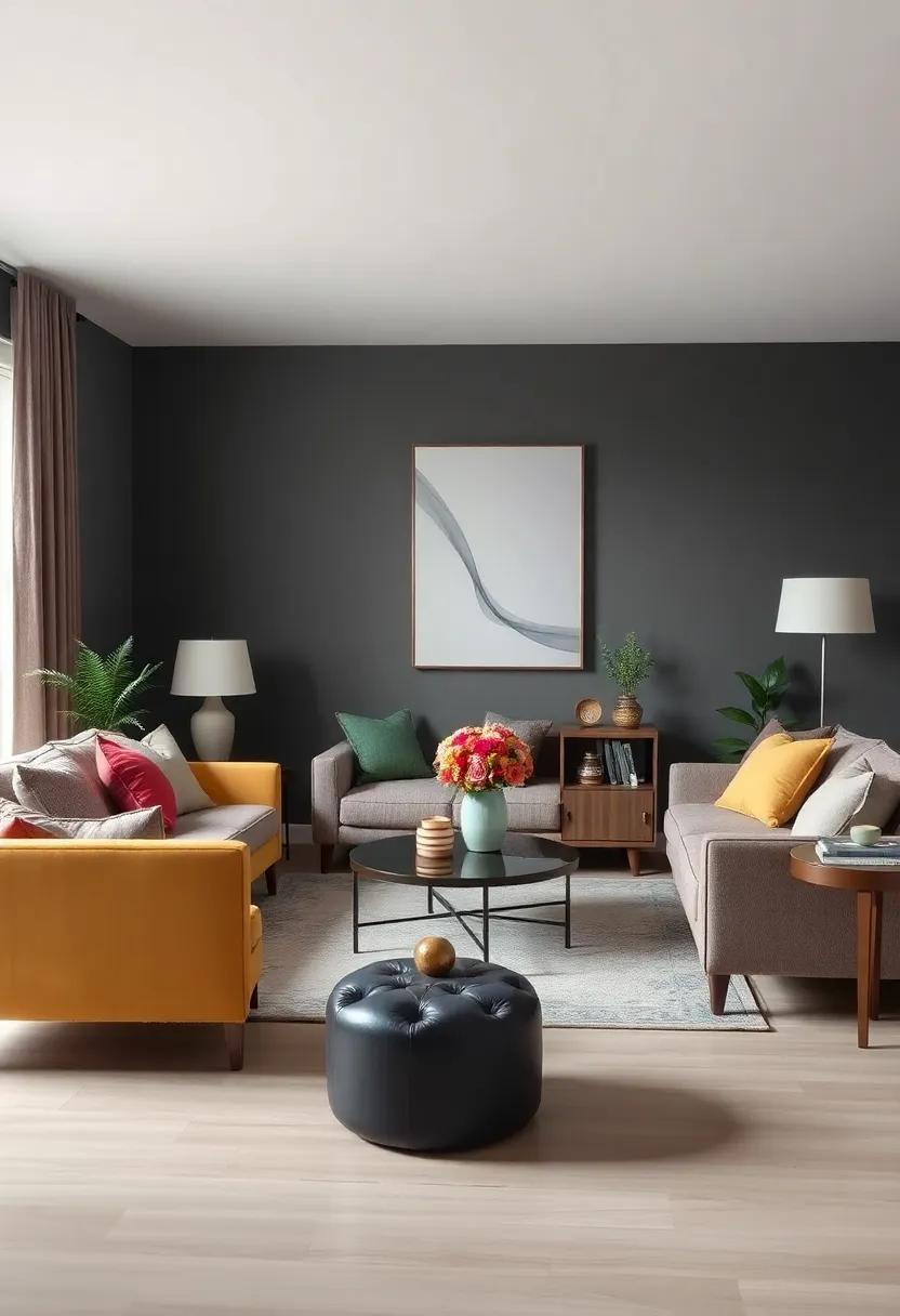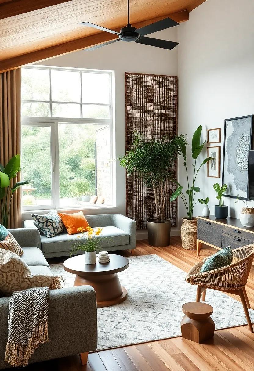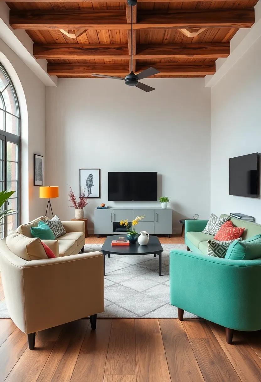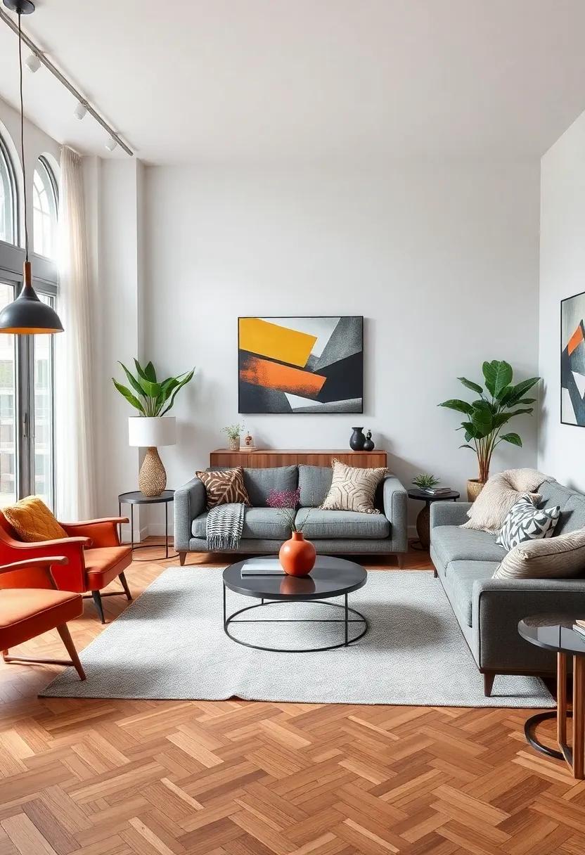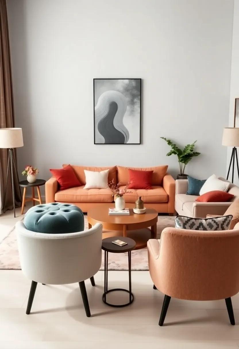 This juxtaposition not only energizes the space but also fosters a sense of layered comfort, making your living room a true reflection of eclectic style. The interplay of softness and stability will engage your guests, inviting them to experience the unique character of your carefully curated decor.