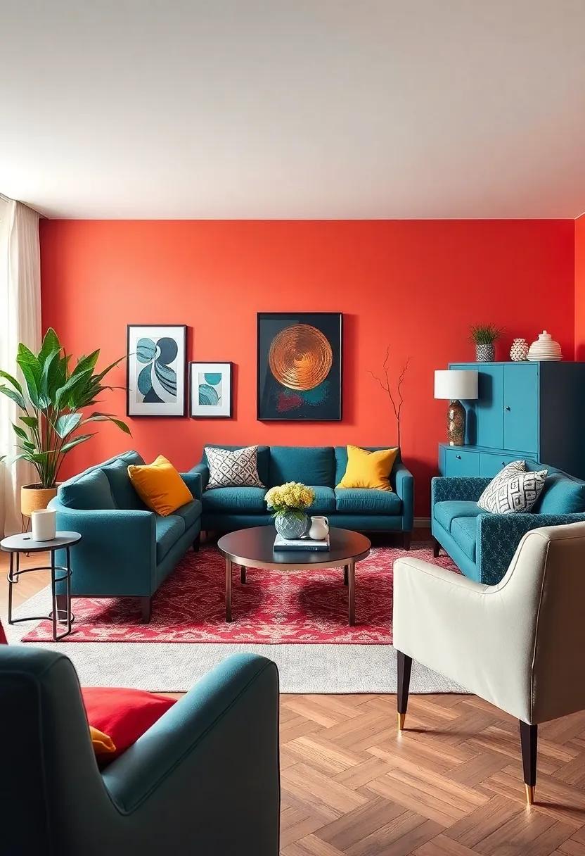 Infusing your living room with bold colors can create an energizing atmosphere that reflects your personal style. By using a vibrant palette, you encourage a sense of creativity and comfort. Consider incorporating vivid hues through various elements such as: