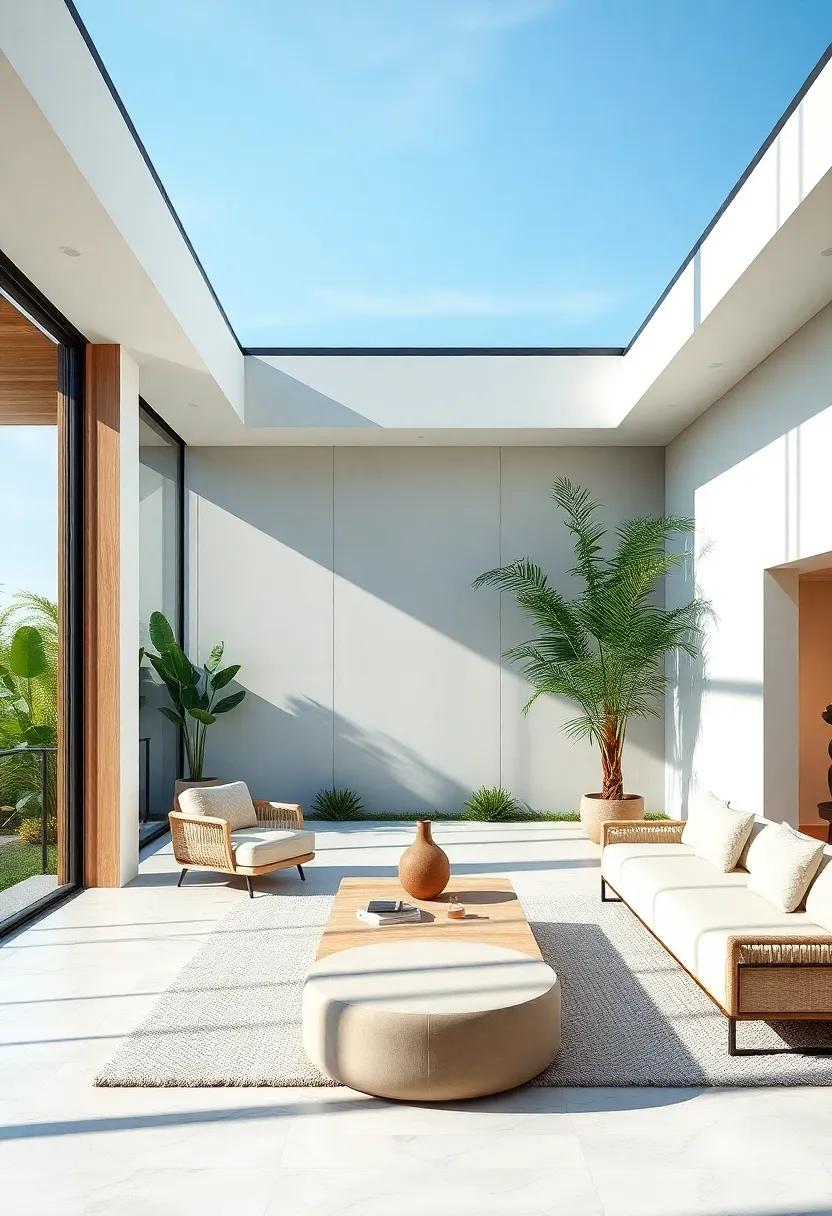 in a luxurious minimalist modern home, the boundaries between indoor and outdoor spaces blur, offering a harmonious living experience that enhances your lifestyle. Large, floor-to-ceiling windows invite natural light indoors, creating a seamless flow between your living area and the lush landscapes outside. Incorporating natural materials such as wood, stone, and glass helps to maintain a cohesive aesthetic that connects these environments. The use of open floor plans accentuates this connection, allowing for effortless movement and interaction between spaces, while minimal decor emphasizes the beauty of simplicity.