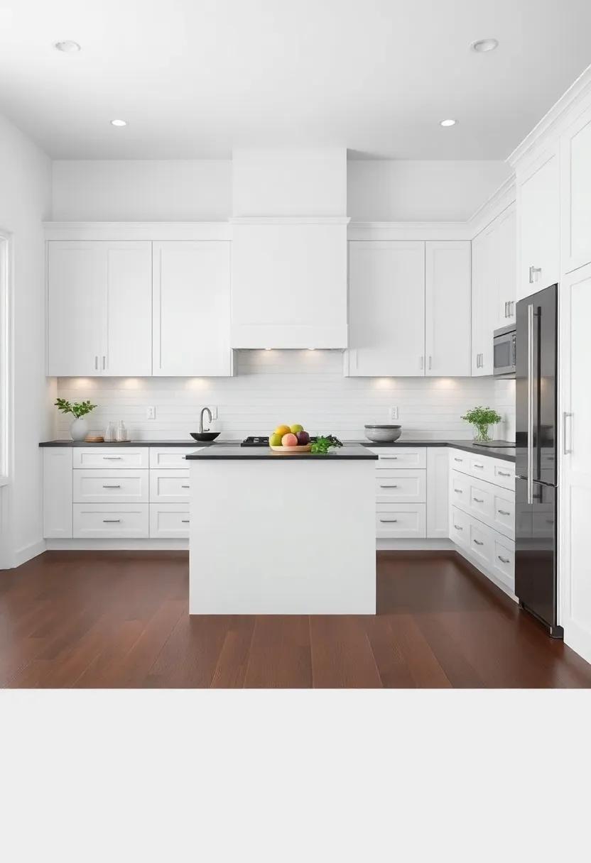 In a world where aesthetics frequently enough take precedence, a white kitchen emerges as a champion of both style and function. The serene backdrop of white cabinets serves not only to enhance light but also to create an inviting atmosphere. This color palette allows for effortless adaptability, where accessories, artwork, and culinary implements can shine against it. Pairing this with dark wood floors creates a striking contrast that brings depth and warmth, inviting a sense of balance. The understated elegance of white cabinetry goes hand in hand with practical features such as ample storage space, easy maintenance, and a versatile layout that accommodates the hustle and bustle of daily life.