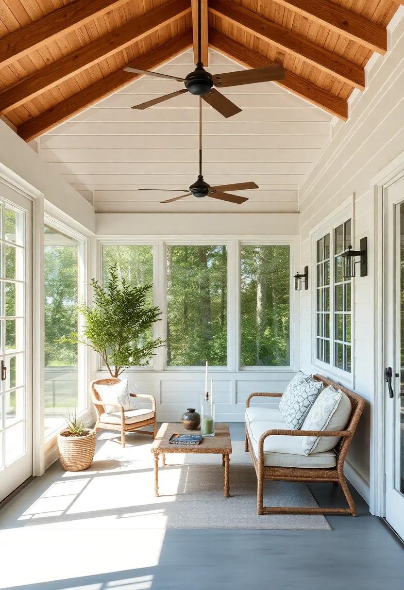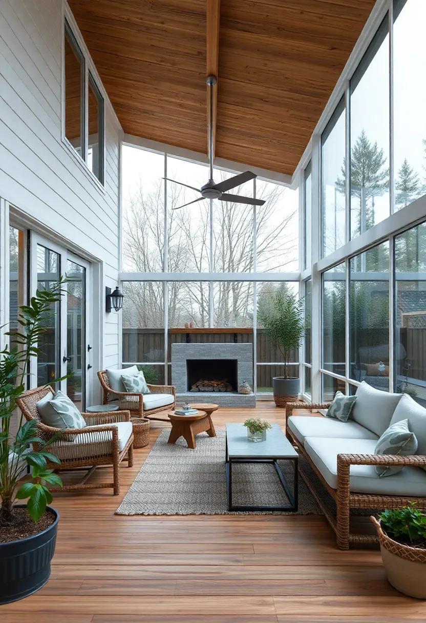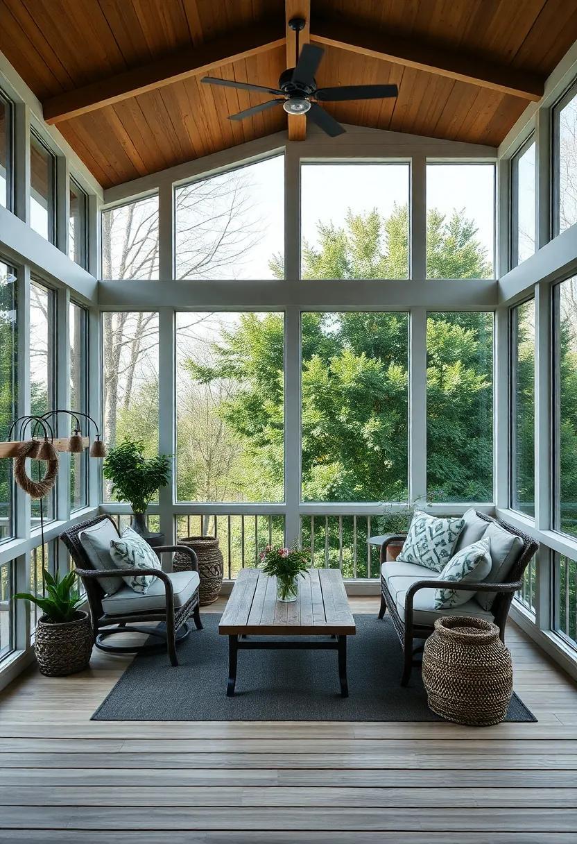 - Natural light: Use expansive screens or large windows to flood the porch with sunlight.
