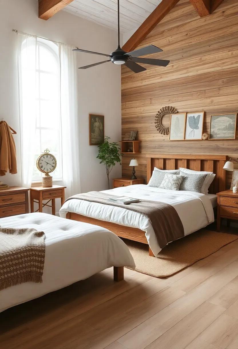 Combining these wooden elements with soft textiles⁣ and muted colors can create a soothing sanctuary. A weathered wood bench at the foot ⁢of the bed or⁣ a small vintage trunk can serve as both functional and aesthetic pieces, blending seamlessly into the rustic theme. Consider using⁢ a mix ⁢of different wood tones​ to‌ add dimension and intersperse greenery ​for a natural touch. The harmony between wood and plant life fosters⁣ a comforting ⁣connection⁣ to the outdoors: