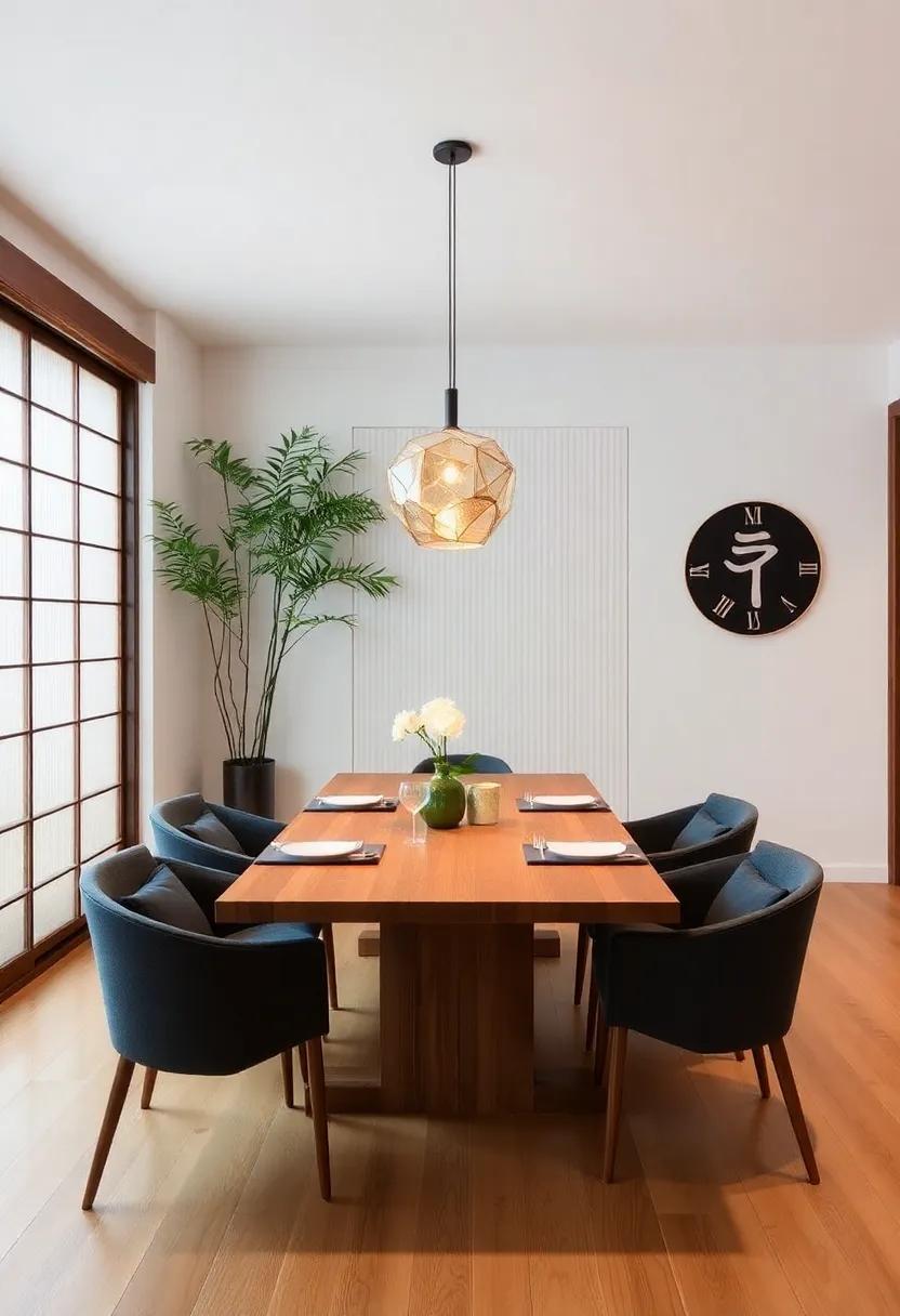 To create an inviting and tranquil atmosphere in your dining room, consider integrating traditional Japanese design elements. One of the hallmark features is the use of natural materials, which not only enhance the aesthetic but also connect the interior to the surrounding environment. Use wood, bamboo, and stone to add warmth and texture.For furniture, select pieces that embody clean lines and simple forms, such as a low dining table made of reclaimed wood, contributing to a feeling of groundedness.Add subtle touches of color with shoji screens or tatami mats, which can infuse the space with serenity and authenticity.