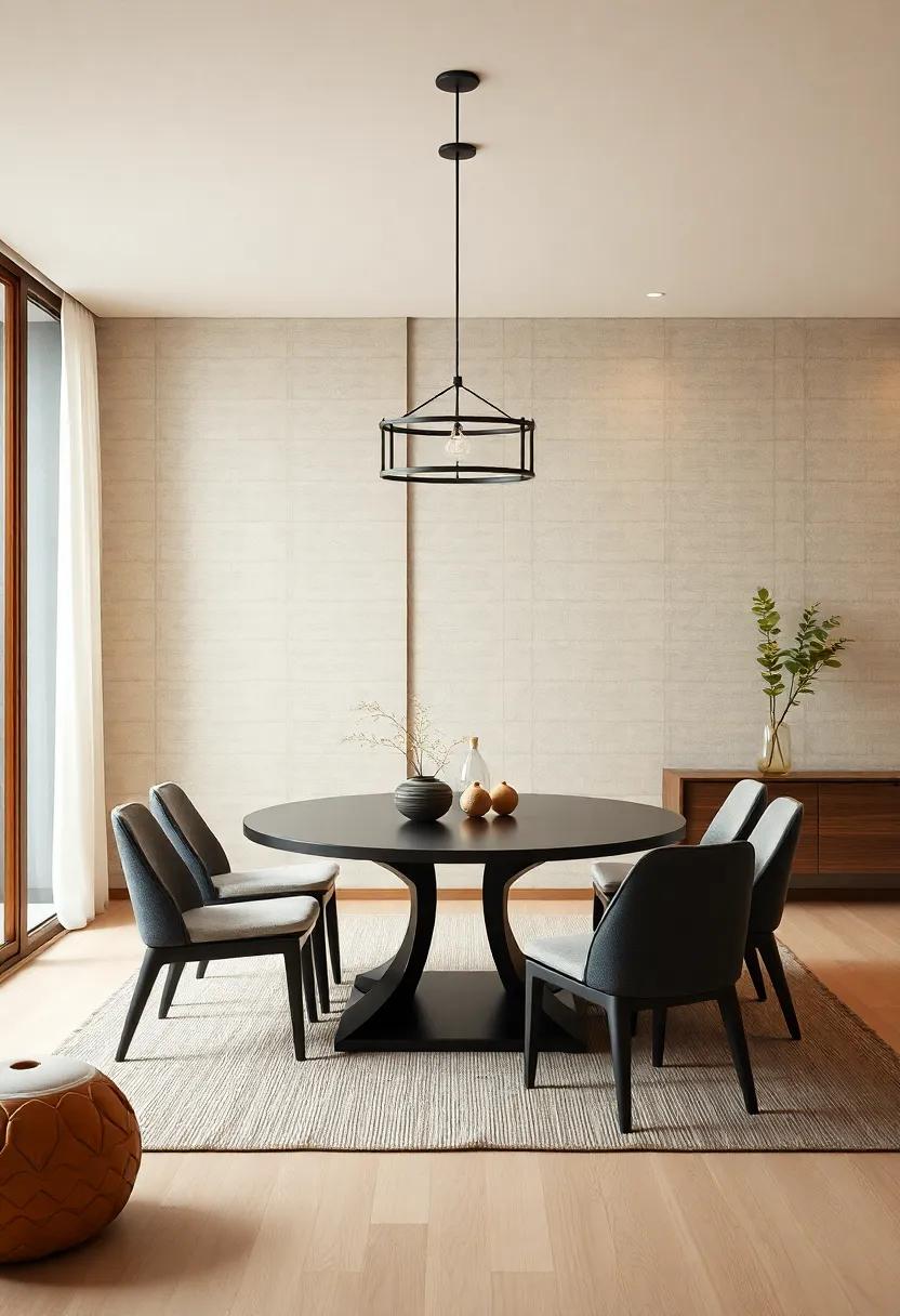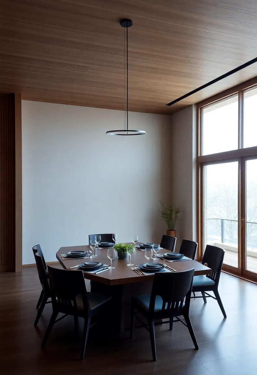 To create a dining room steeped in serene simplicity, consider integrating elements inspired by customary Japanese aesthetics. The focus should be on natural materials and a harmonious color palette that reflects the tranquility of nature. Opt for a dining table crafted from warm, untreated wood, paired with low-profile seating that promotes an inviting yet understated dining experience. Incorporating sliding shoji screens can enhance the space, allowing for a soft diffusion of light while maintaining a sense of privacy and calm. Consider adding a touch of greenery through potted bonsai or minimalist arrangements of ikebana, the Japanese art of flower arrangement, to evoke a deeper connection with nature.