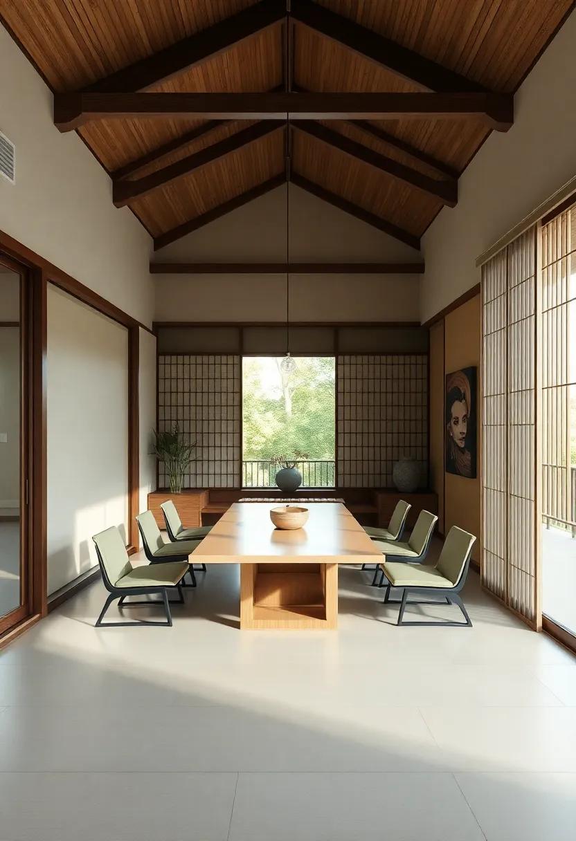 Creating an airy dining room that reflects the calm of Japanese Zen principles involves a blend of natural elements and thoughtful design choices.Opting for large windows or sliding doors allows natural light to flood the space, making it feel open and inviting. Incorporating materials such as light-colored wood, stone, and bamboo enhances the organic feel, promoting a connection with nature. Key design elements to consider include: