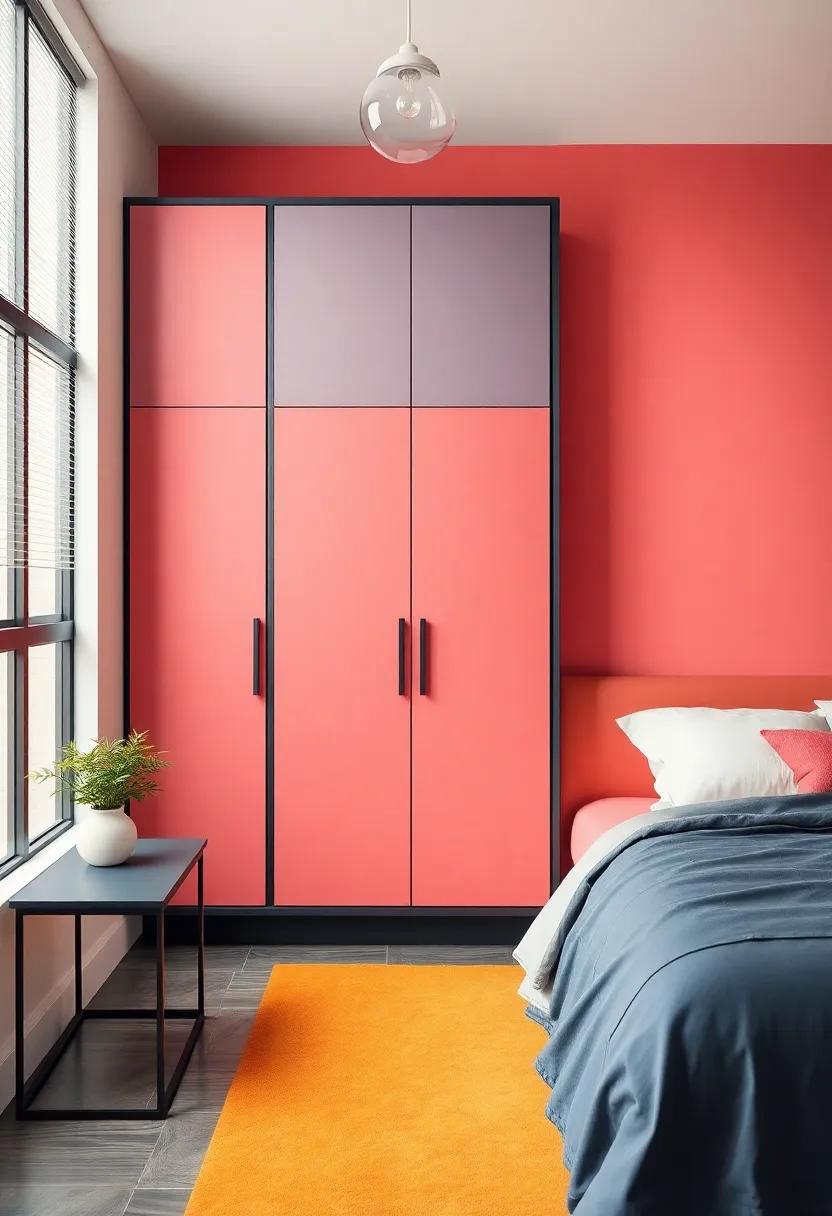 Utilizing color blocking within your wardrobes creates bold statements that can transform your bedroom into a stylish sanctuary, making the most of every inch of space.As you embrace this technique, remember that the goal is to express your unique style through contrasting colors and textures that resonate with the industrial aesthetic.