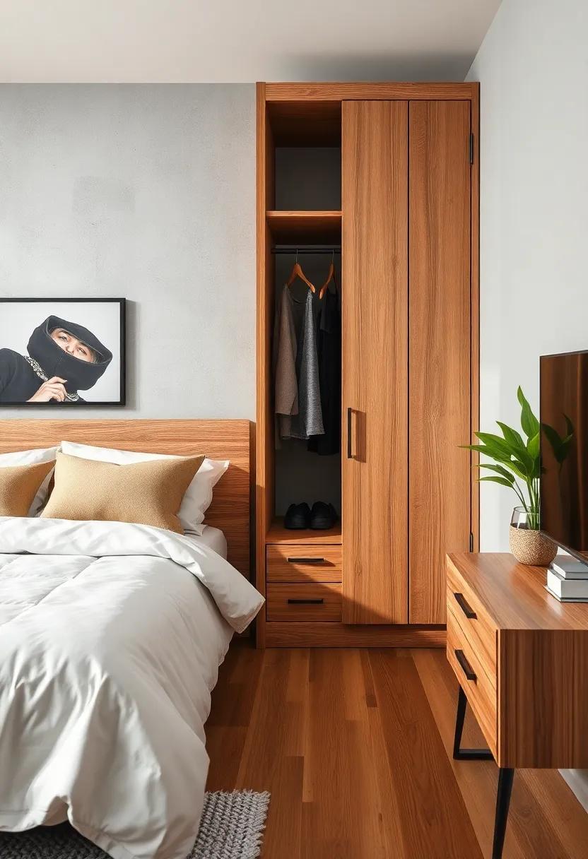 Along with metallic elements, consider incorporating natural textures that complement the raw feel of industrial design. Wooden components, such as a reclaimed wood shelf or a rustic photo frame, can soften the hardness of metal while maintaining an organic appeal. Use textured fabrics,like burlap or linen in your bedding or curtains,to provide a cozy contrast against the sleek lines of your wardrobe. Incorporating these accessories creates a harmonious balance, ensuring your bedroom becomes a unique sanctuary of style and comfort.