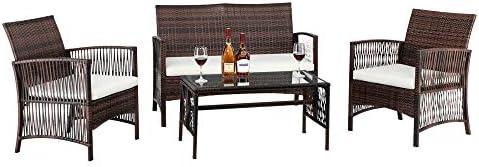 However, while this sectional conversation set offers a range of benefits, it’s essential to consider some potential downsides. The assembly can be somewhat time-consuming, requiring a bit of patience and effort, especially if you’re not familiar with putting together furniture. Also, while the rattan design is appealing, it may not complement every outdoor aesthetic. In terms of weight capacity, it holds up to 250 pounds, which is adequate, but larger individuals might find it slightly limiting. this set is a beautiful addition to enhance your outdoor gatherings, blending modern design with comfortable seating.
