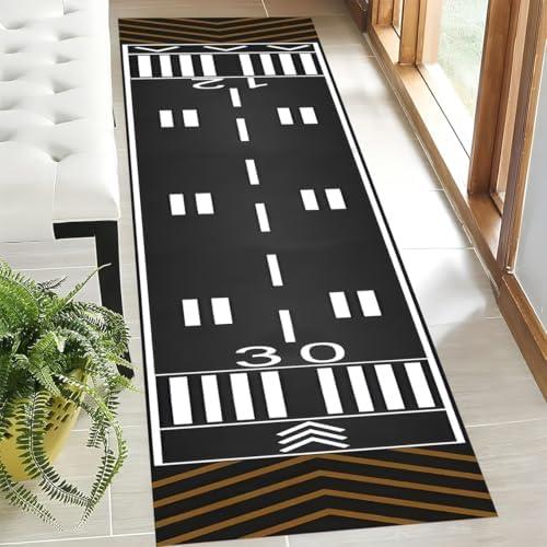 This creatively designed rug is perfect for adding a playful touch to your child’s playroom or any aviation-themed space. With a vibrant 3D digital print that mimics a runway, it sparks imagination and encourages pretend play. The rug is crafted from a cotton woven base, providing a soft and soothing texture underfoot, while its non-slip sole ensures safety, making it suitable for high-traffic areas. Measuring 80×200 cm (31×78 inches), it fits seamlessly into various room layouts, enhancing the overall decor.
