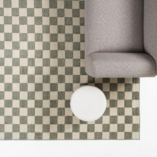 This beautiful area rug showcases a unique blend of soft cream and olive green in a classic check pattern, making it a versatile choice for various home settings. Its medium pile provides a plush feel underfoot, ensuring comfort in both living rooms and bedrooms. Crafted from 100% recycled polyester and certified by Oeko-Tex, it not only enhances the aesthetics of your space but also reflects a commitment to sustainability. The neutral tones of this rug seamlessly integrate with modern décor, creating a warm and inviting atmosphere in any room.