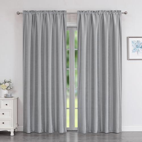 Chyhomenyc Uptown Faux Silk Silver ⁤Grey Curtains 84 Inch Length 2 Panels for Bedroom, Room Darkening Soft Shiny Fabric Rod Pocket Window Drapes⁢ for Living Room, Each 40×84 Inches, ‍7 FT