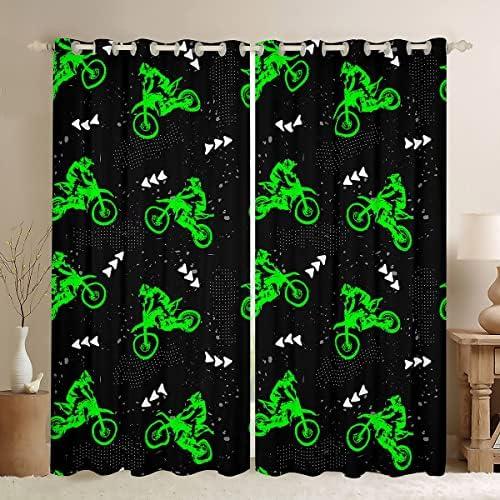 Feelyou Boys Dirt Bike Window Curtains Bedroom Living Room Cool Sports Curtains Kids Room Decor​ Boys Motocross Rider Window Drapes Fluorescent Green Bike Window​ Treatments 42W X 63L,2 Panels
