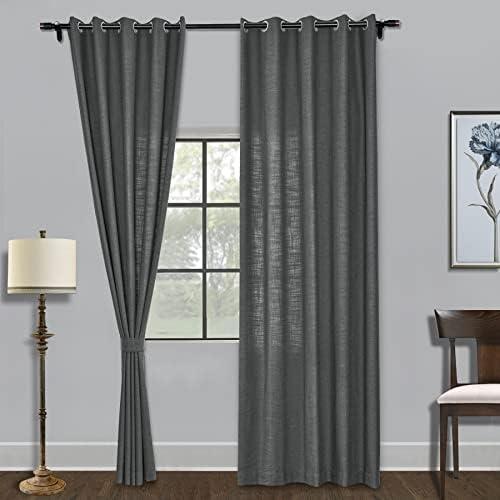 These stylish and functional drapes effectively block out unwanted light, creating a serene atmosphere in any room. Made from a rich blend of natural linen fabric and heavy-weight material, they not only offer a soft-touch feel but also provide excellent thermal insulation and noise reduction. The measurements of 100 inches in width and 102 inches in length make them ideal for larger windows or as room dividers. They feature 14 nickel grommets that fit well with standard curtain rods, making installation a breeze. Additionally, matching tiebacks are included, allowing for versatile styling options.