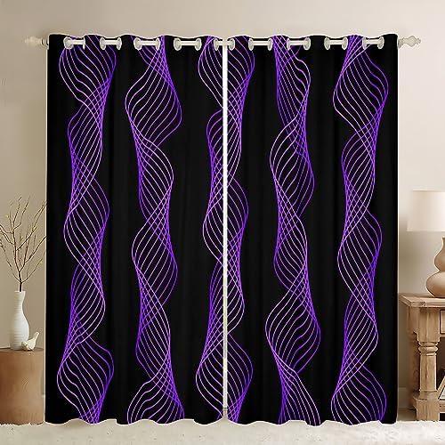 Modern Geometric Blackout Curtains with Purple and Black Stripes