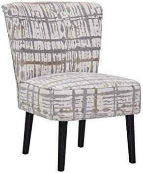 This accent chair brings a sleek and modern flair to any room, making it a versatile addition to your home. Its curved, cushioned back ensures comfort and style, while the gold and grey splatter fabric adds a contemporary touch. Perfect for smaller spaces, this chair works well in casual dining settings, as a desk chair, or even in cozy side seating arrangements. Easy assembly is possible with the included hardware and hidden storage for the legs beneath the seat, ensuring that you can start enjoying the chair in no time.