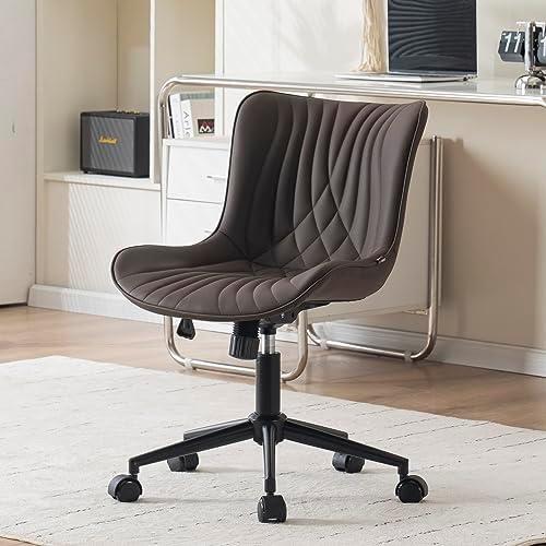 Modern Faux Leather Armless Swivel Chair with Wheels