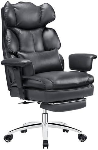 Experience unparalleled comfort with a versatile office chair designed to cater to those who spend long hours working or studying. The reclining feature, adjustable backrest angle, and retractable footrest create an ideal resting environment. Crafted from high-quality PU leather, the chair boasts a stylish finish, enhancing the aesthetics of your workspace. With a sturdy metal base, it supports up to 350 lbs and offers a spacious seat cushion measuring 20.47″D x 24.8″W, ensuring adequate space and support for larger individuals. Its ergonomic design, complete with independent lumbar support and double-layer foam, promotes better posture during extended use.