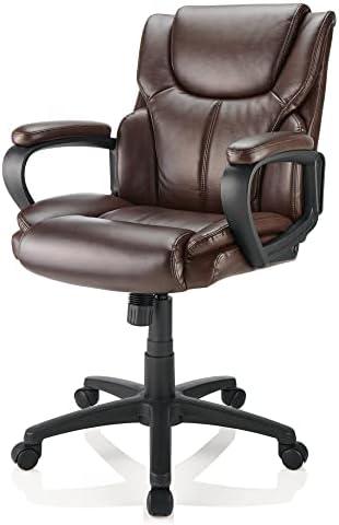 We’ve found that this mid-back task chair seamlessly fits into various settings, making it a valuable addition to our office or home space. Its ergonomic design and waterfall seat cushion not only enhance comfort but also provide practical functionality that allows us to use it in different environments. Whether we need a focused workspace at home, a creative corner in the studio, or a sleek addition to our corporate office, this chair delivers adaptability. The brown and black vinyl finish offers a sophisticated touch, effortlessly blending with diverse decor, from modern minimalist to classic traditional styles.