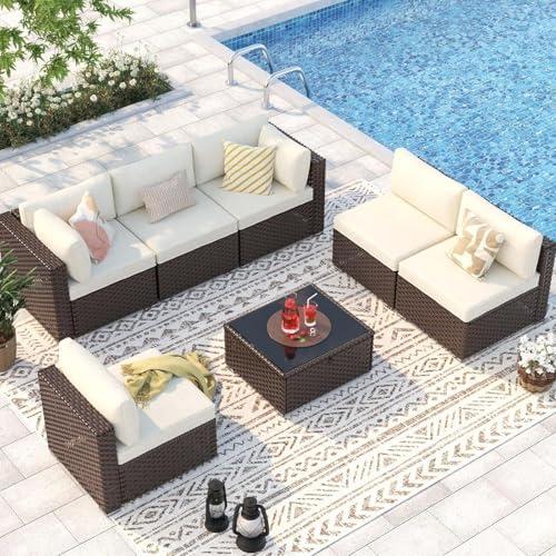 On the downside, while assembly is straightforward with the included manual, some users might find the need for two separate deliveries for the components to be inconvenient. The transition between layouts, although flexible, could require adjusting positioning, potentially leading to a less cohesive look if not arranged thoughtfully. Nevertheless, cleaning is a breeze due to the splash-proof fabric, and the tempered glass coffee table adds a sleek touch, easily maintained by wiping down after use. For a fantastic addition to your outdoor space, consider checking it out here.