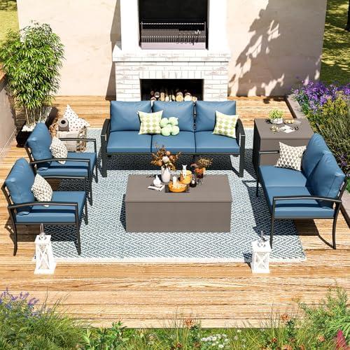 With a flexible combination set that includes two single chairs, a loveseat, a sofa, a coffee table, and a side table, you can easily configure the layout to suit your preferences. Additionally, the coffee and side tables serve as storage boxes, offering a practical solution for keeping outdoor essentials organized. However, some users might find the assembly process a bit challenging, and while the materials are durable, they may not withstand extreme weather conditions without proper care.