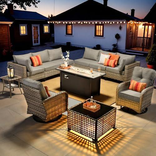 Luxury Outdoor Patio Furniture Set with Fire Pit and Swivel Chairs