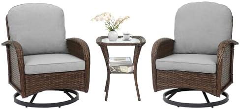 However, while there are many advantages, this outdoor ensemble does come with specific considerations. The set is relatively large, which may require ample space on your patio or deck. While the materials are designed for durability and resistance to fading and wear, some users may find that intense exposure to sunlight can still affect the longevity of the upholstery over time. Additionally, the swivel rocking chairs add a touch of fun, but they may not be as stable as stationary options for all users. this outdoor furniture set is a great investment for those looking to enhance their patio experience, but it’s important to ensure you have sufficient space and to take care of the fabric for lasting quality.