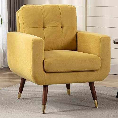 This upholstered club chair seamlessly combines mid-century modern aesthetics with comfort, making it an excellent addition to any living room, bedroom, or waiting area. Crafted with quality padded foam and a soft fabric surface, it offers a cozy seating experience ideal for reading, napping, or relaxing after a long day. The tufted button design adds a touch of elegance, while the vibrant yellow color injects a refreshing pop into your decor. Measuring 28″W x 27″D x 36″H with a seat height of 21″, it is compact enough for smaller spaces but roomy enough for comfortable seating. Additionally, the chair supports a maximum weight capacity of 350 lbs, accommodating a variety of users.