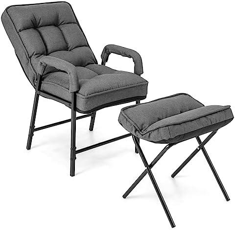 Stylish Accent Chair with Ottoman, Adjustable Backrest & Sturdy Metal Frame