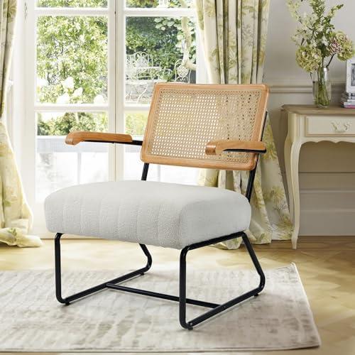 This versatile accent chair fits seamlessly into a variety of home settings, from cozy reading nooks in the living room to sunlit corners in the bedroom. With a cozy whiteteddy upholstered seat and breathable rattan back, this chair offers a perfect blend of comfort and style. Measuring 23.2″(L) x 33.1″(H) x 26″(W), it provides ample space for relaxation while enhancing the aesthetic of your home. The natural rattan and wooden armrests add an organic touch, making it a standout piece that evokes admiration and invites conversation.