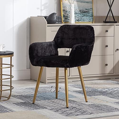 This stylish arm chair features a luxurious faux fur upholstery that enhances your bedroom, living room, or vanity area with a touch of elegance. Designed with a spacious seating area and thick sponge padding, it ensures a comfortable sitting experience, making it perfect for long makeup sessions or study hours. The chair is built on a sturdy frame with beautiful gold-finished metal legs, supporting a weight capacity of up to 250 lbs. Its dimensions of 21.65″ (L) x 22.44″(W) x 31″(H) make it a versatile piece that fits seamlessly into various settings.
