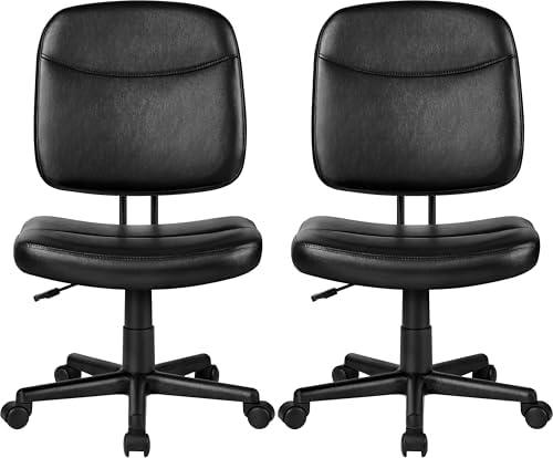 Ergonomic Armless Office Chair Featuring PU Leather and Adjustable Swivel