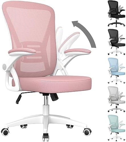 This office chair combines style and comfort with its breathable mesh backrest and cushion, ensuring adequate airflow to keep you cool during long work sessions. The high-density sponge seat cushion and elastic backrest are designed to provide optimal support, adapting to your body’s unique characteristics. The adjustable 3D headrest and lumbar support encourage proper posture, alleviating discomfort from prolonged sitting. Moreover, the chair’s flip-up armrests are a smart addition for those with limited space, allowing for easy storage when not in use, making it a versatile choice for home or office environments.