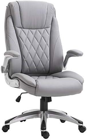 Designed with both style and functionality in mind, this chair offers adjustable height features for a customized fit to your desk and personal sitting preferences. The flip-up arms reduce the chair’s footprint when not in use, making it a practical choice for smaller spaces. The chair also boasts a rocking function, allowing for soothing back-and-forth motion that provides an extra layer of relaxation during long work sessions. With a sleek faux leather finish, it seamlessly integrates into any home office décor.