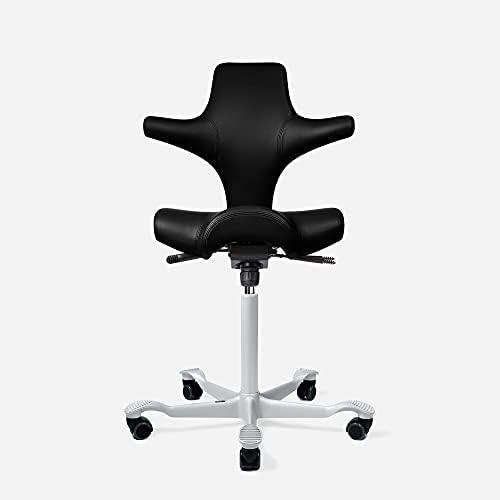 HAG Capisco Adjustable Standing Desk Chair – Silver Frame - PVC-Free Vinyl Onyx Black Seat