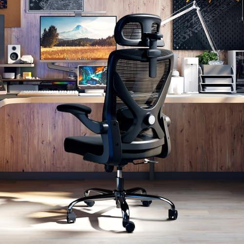 An ideal choice for those who work long hours at their desks, this office chair boasts several features designed for comfort and support. The adjustable lumbar support ensures your spine stays aligned, while the ergonomic backrest fits snugly against your lower back, alleviating discomfort during prolonged use. The breathable mesh fabric helps reduce sweating, making it pleasant to sit for hours. Plus, with flip-up armrests, you can easily tuck the chair under your desk, maximizing space and convenience.