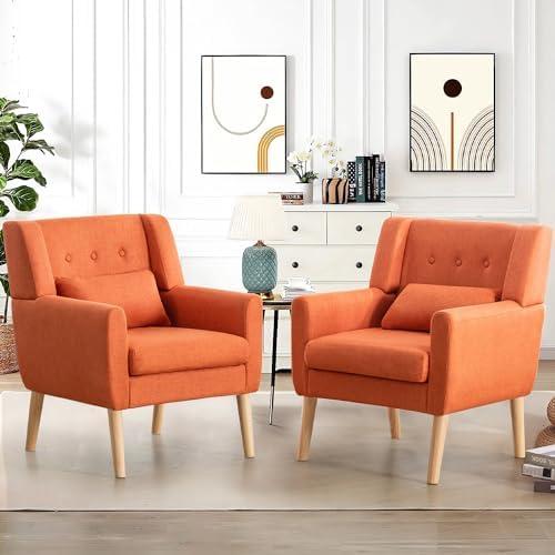 These elegant accent chairs combine mid-century modern design with practicality, making them a versatile addition to various spaces in your home. Crafted with solid wood legs and a durable metal frame, they boast a maximum load capacity of 350 lbs, ensuring stability and longevity. The upholstered linen fabric, adorned with button tufting, not only enhances the aesthetic appeal but also provides a comfortable seating experience. The ergonomic design, complemented by a high-resilience sponge back pillow, allows you to lounge or read for extended periods without discomfort. Moreover, protective feet underneath help maintain your floors, making these chairs not only stylish but also functional.