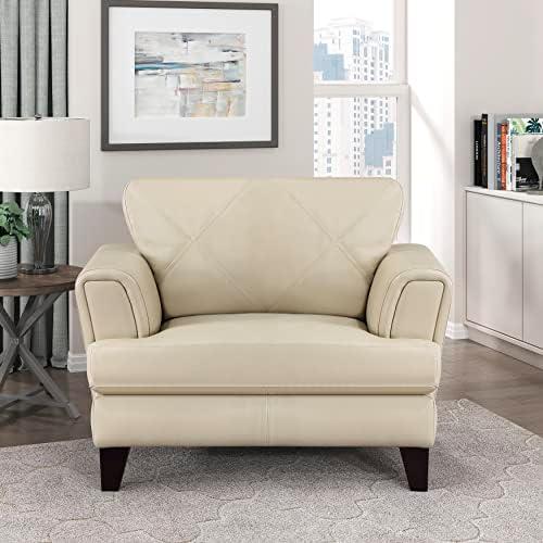 This stylish seating solution features a stunning cream leather upholstery that not only adds a touch of sophistication but also complements various decor styles. The robust wooden frame crafted from pine wood and plywood ensures durability, while the foam boxed pocket coil cushion provides exceptional comfort and support. Additionally, the chair’s track arms and tufted back enhance its contemporary aesthetic, making it a perfect focal point in your living room. With dimensions measuring 44.5″ x 38″ x 35.5″, the dimensions make it a spacious yet compact option for various room sizes.