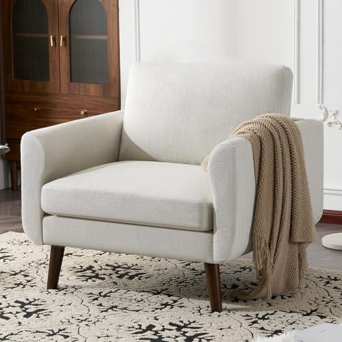 This accent chair features a mid-century modern aesthetic with a solid wood structure and soft linen fabric, offering both style and comfort. The high-density sponge filling in the seat and back provides exceptional softness, making it an ideal spot for reading, relaxing, or enjoying a quick nap. Its minimalist design not only enhances your living room or bedroom decor but also suits various interior design themes, delivering a sense of tranquility and elegance. With dimensions of 30.91″ (W) x 27.75″ (D) x 31.89″ (H), it fits seamlessly into smaller spaces while still providing ample seating.