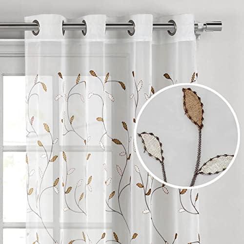 Elegant Sheer Curtains with Leaf Embroidery