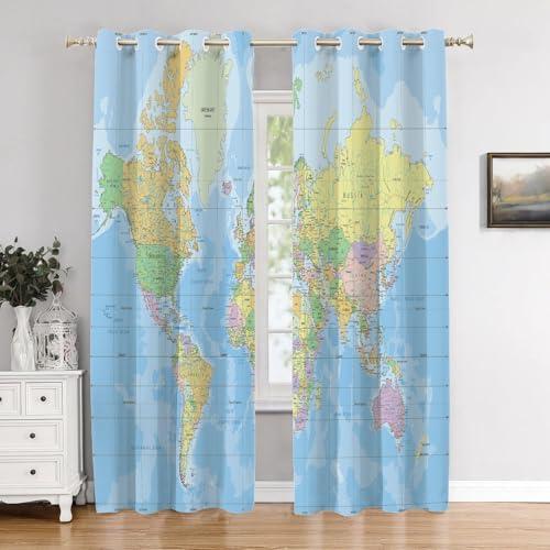 Vivid World Map Curtains with Blackout Features
