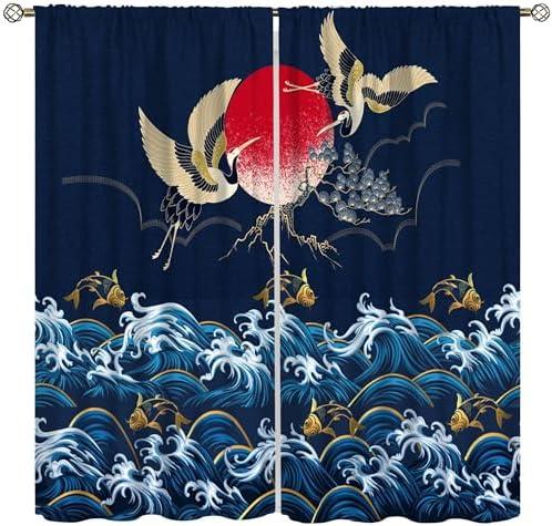 Enhance your living space with this beautifully designed curtain set that features stunning imagery of cranes, waves, and koi fish. Standing at 42 inches wide by 45 inches long, each panel is crafted from high-quality polyester fabric that offers a luxurious feel while being practical for everyday use. The curtains effectively block around 80% of light and UV rays, creating a cozy and serene atmosphere in any room. Their artistic print adds a unique oriental flair, making them perfect for bedrooms, living rooms, or even office spaces.