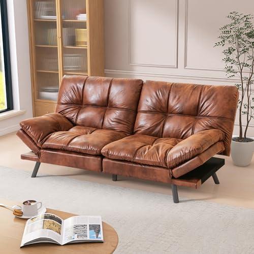 Compact, Stylish Sofa Bed with Faux Leather and Memory Foam